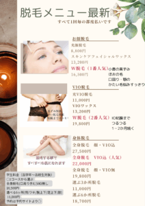⚠️3ヶ所以上の脱毛受付です※ワキのみ等の1ヶ所は受付しておりません。ご了承ください。